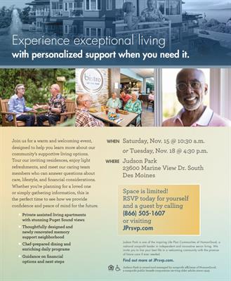 Join us for a warm and welcoming event designed to help you learn more about our community’s supportive living options. Tour our inviting residences, enjoy light refreshments, and meet our caring team members who can answer questions about care, lifestyle, and financial considerations. Whether you’re planning for a loved one or simply gathering information, this is the perfect time to see how we provide confidence and peace of mind for the future.